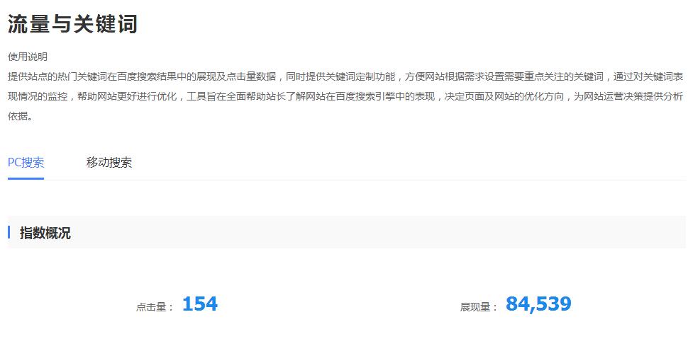 關鍵詞排名數量在百度首頁上的已超過100多個。日均點擊量在10個左右,展現量每月在85000次左右。這樣的數據是很可觀的。