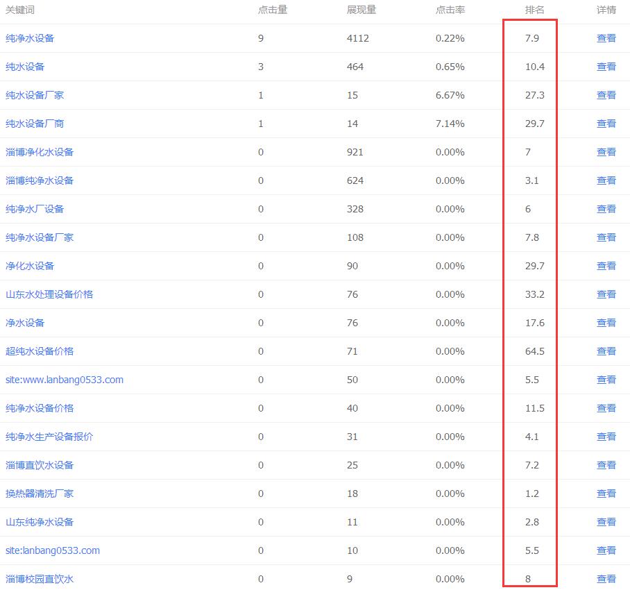 網站的一類詞是純凈水設備,純凈水設備價格,山東純凈水設備廠家。因為這個行業競爭十分激烈,純凈水設備這個詞前十頁基本上全是各個企業做優化官方網站,所以我們在推廣初期將這些一類熱詞分別在網站權重最高的網站首頁位置。目前經過資深和蘭邦雙方不懈努力,已經全部實現百度首頁排名: